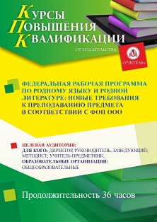 Федеральная рабочая программа по родному языку и родной литературе: новые требования к преподаванию предмета в соответствии с ФОП ООО (36 ч.)