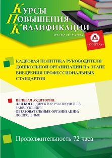 Курс Кадровая политика руководителя дошкольной организации на этапе внедрения профессиональных стандартов (72 ч.) | Маркетплейс онлайн образования Edwica