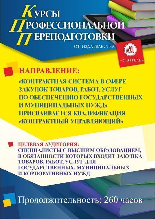 Контрактная система в сфере закупок товаров, работ, услуг по обеспечению государственных и муниципальных нужд. Присваивается квалификация Контрактный управляющий (260 ч.)