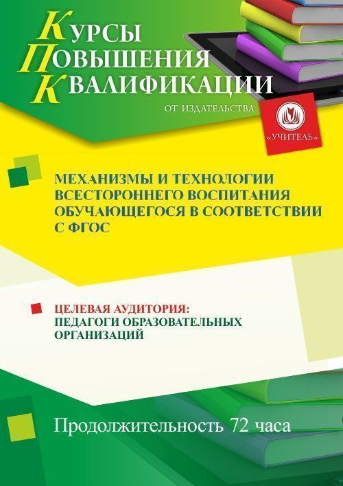 Механизмы и технологии всестороннего воспитания обучающегося в соответствии с ФГОС (72 ч.)