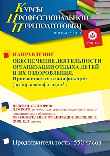 Обеспечение деятельности организации отдыха детей и их оздоровления. Присваивается квалификация (выбор квалификации*) (550 ч.)