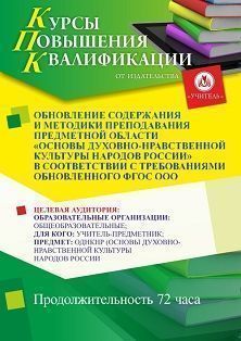 Обновление содержания и методики преподавания предметной области Основы духовно-нравственной культуры народов России в соответствии с требованиями обновленного ФГОС ООО (72 ч.)