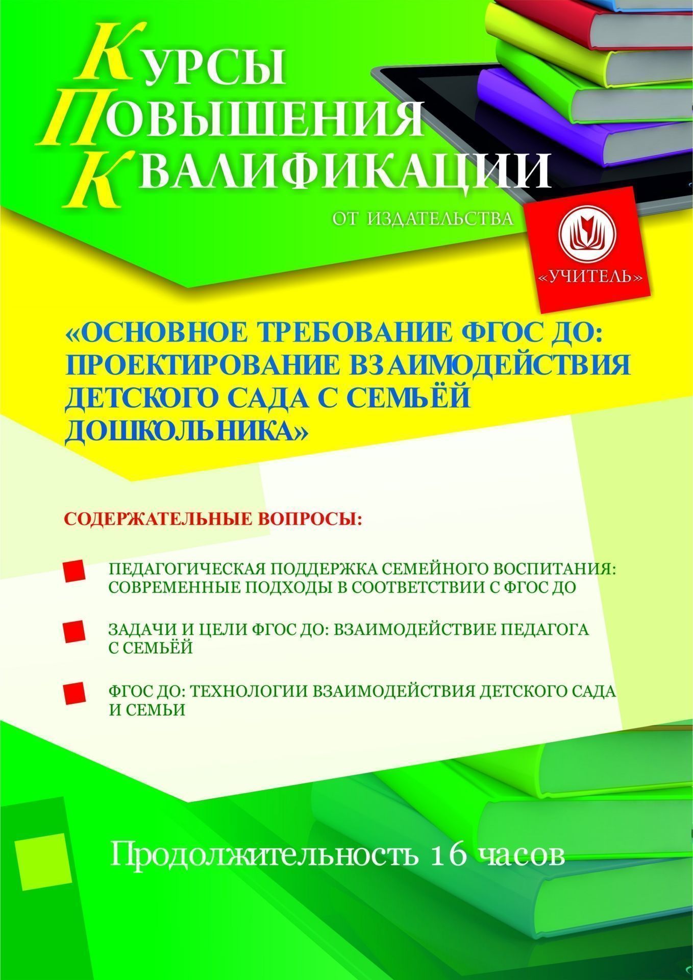 Курс Основное требование ФГОС ДО: проектирование взаимодействия детского сада с семьёй дошкольника (16 ч.) | Маркетплейс онлайн образования Edwica