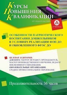 Особенности патриотического воспитания дошкольников в условиях реализации ФОП ДО и обновлённого ФГОС ДО (36 ч.)