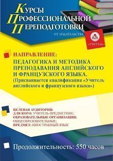 Педагогика и методика преподавания английского и французского языка. Присваивается квалификация Учитель английского и французского языка (550 ч.)