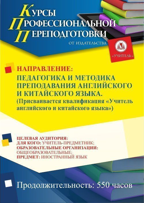 Педагогика и методика преподавания английского и китайского языка. Присваивается квалификация Учитель английского и китайского языка (550 ч.)