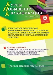 Психолого-педагогическая и информационно-просветительская поддержка семей в рамках реализации Федерального проекта Современные родители (72 ч.)