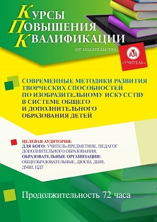 Современные методики развития творческих способностей по изобразительному искусству в системе общего и дополнительного образования детей (72 ч.)