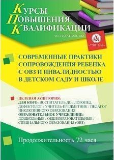 Современные практики сопровождения ребенка с ОВЗ и инвалидностью в детском саду и школе (72 ч.)