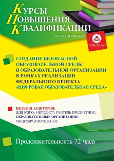 Создание безопасной образовательной среды в образовательной организации в рамках реализации федерального проекта Цифровая образовательная среда (72 ч.)