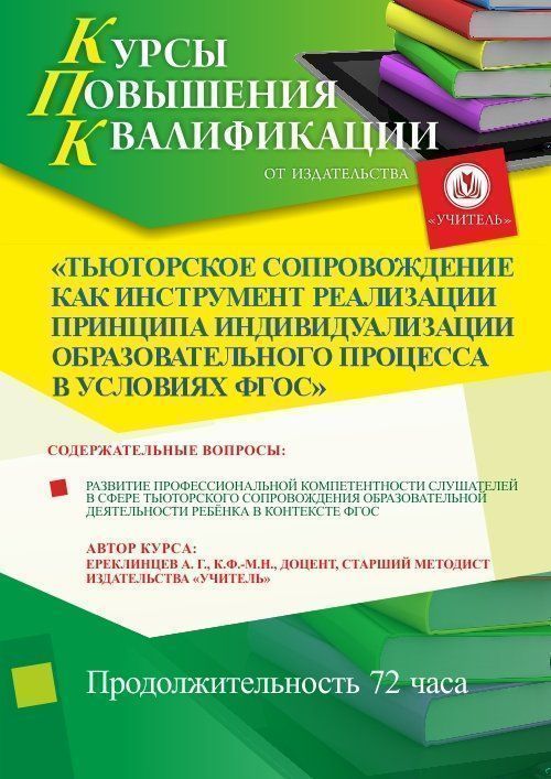 Тьюторское сопровождение как инструмент реализации принципа индивидуализации образовательного процесса в условиях ФГОС (72 ч.)