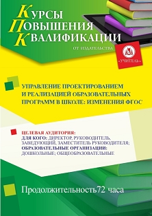 Управление проектированием и реализацией образовательных программ в школе: изменения ФГОС (72 ч.)