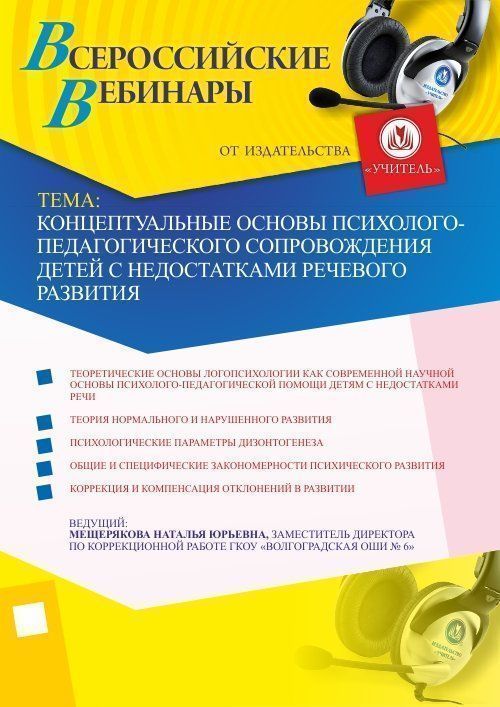 Приглашаем воспитателей, учителей начальных классов, психологов, тьюторов, педагогов инклюзивного образования, методистов, логопедов, дефектологов принять участие в offline-вебинаре «Концептуальные основы психолого-педагогического сопровождения детей с недостатками речевого развития».