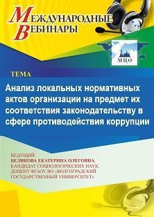 Международный вебинар Анализ локальных нормативных актов организации на предмет их соответствия законодательству в сфере противодействия коррупции
