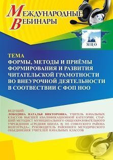 Международный вебинар Формы, методы и приёмы формирования и развития читательской грамотности во внеурочной деятельности в соответствии с ФОП НОО
