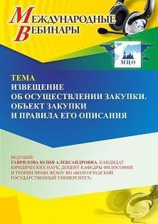 - Курс Международный вебинар Извещение об осуществлении закупки. Объект закупки и правила его описания | Маркетплейс онлайн образования Edwica
