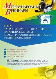 Международный вебинар Кадровый аудит в организации: параметры, методы, классификация, документация, этапы проведения