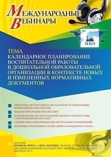 Международный вебинар Календарное планирование воспитательной работы в дошкольной образовательной организации в контексте новых и измененных нормативных документов