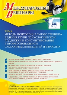 Международный вебинар Методы психосоциального тренинга ведения групп психологической поддержки и консультирования в профессиональном самоопределении детей и взрослых