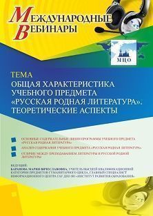 Международный вебинар Общая характеристика учебного предмета “Русская родная литература”. Теоретические аспекты