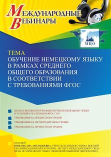 Международный вебинар Обучение немецкому языку в рамках среднего общего образования в соответствии с требованиями ФГОС