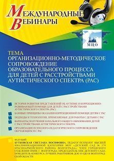 Международный вебинар Организационно-методическое сопровождение образовательного процесса для детей с расстройствами аутистического спектра (РАС)