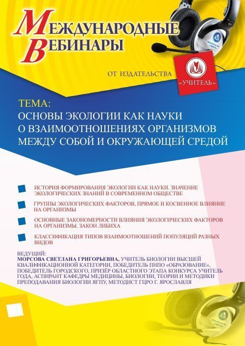 Международный вебинар "Основы экологии как науки о взаимоотношениях организмов между собой и окружающей средой"