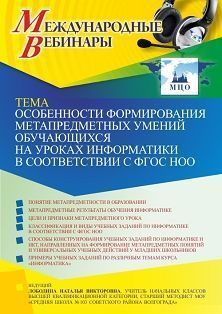 Международный вебинар Особенности формирования метапредметных умений обучающихся на уроках информатики в соответствии с ФГОС НОО