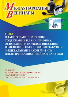 Международный вебинар Планирование закупок: содержание плана-графика, основания и порядок внесения изменений. Обоснование закупок (Федеральный закон № 44-ФЗ). Идентификационный код закупки