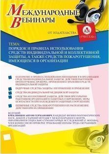 Международный вебинар "Порядок и правила использования средств индивидуальной и коллективной защиты, а также средств пожаротушения, имеющихся в организации"