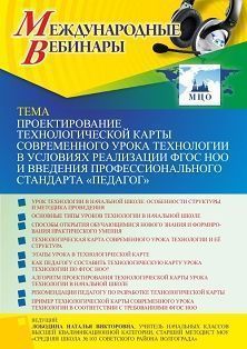 Международный вебинар Проектирование технологической карты современного урока технологии в условиях реализации ФГОС НОО и введения профессионального стандарта “Педагог”
