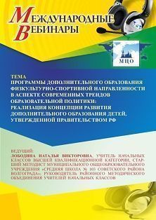 Международный вебинар Программы дополнительного образования физкультурно-спортивной направленности в аспекте современных трендов образовательной политики: реализация Концепции развития дополнительного образования детей, утвержденной правительством РФ