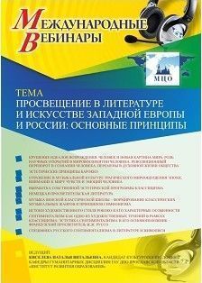 Международный вебинар "Просвещение в литературе и искусстве Западной Европы и России: основные принципы"
