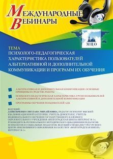 Международный вебинар Психолого-педагогическая характеристика пользователей альтернативной и дополнительной коммуникации и программ их обучения