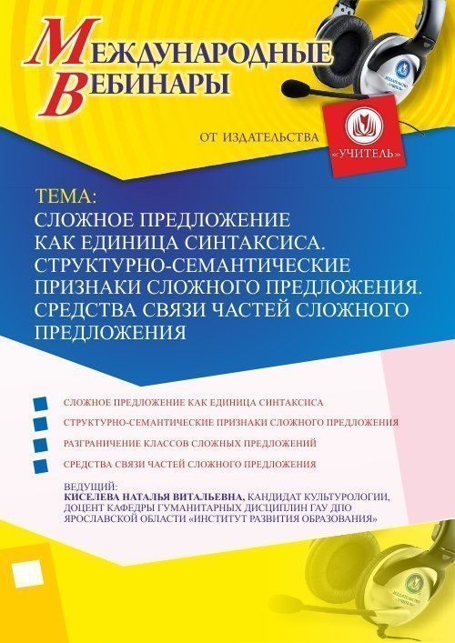 Международный вебинар "Сложное предложение как единица синтаксиса. Структурно-семантические признаки сложного предложения. Средства связи частей сложного предложения"