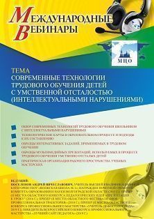 Международный вебинар Современные технологии трудового обучения детей с умственной отсталостью (интеллектуальными нарушениями)