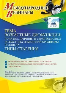 Международный вебинар Возрастные дисфункции: понятие, причины и симптоматика возрастных изменений организма человека. Типы старения