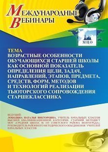 Международный вебинар Возрастные особенности обучающихся старшей школы как основной показатель определения цели, задач, направлений, этапов, предмета, средств, форм, методов и технологий реализации тьюторского сопровождения старшеклассника