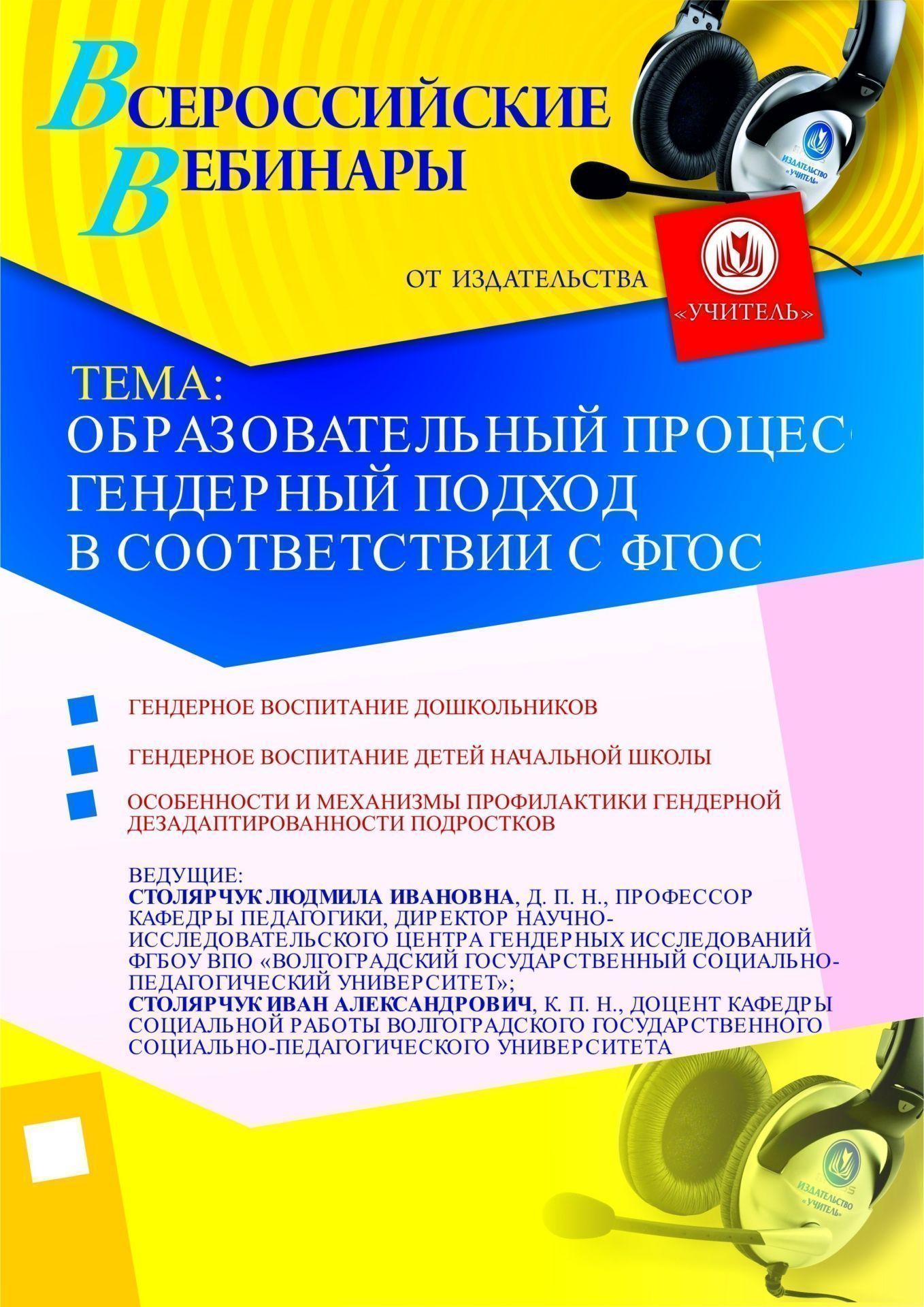Приглашаем руководителей образовательных организаций, психологов и социальных педагогов, специалистов социально-педагогических служб, методистов, педагогов, воспитателей, специалистов органов управления образования и учреждений развития образования, преподавателей и студентов педагогических учебных заведений принять участие в offline-семинаре "Образовательный процесс: гендерный подход в соответствии с ФГОС".