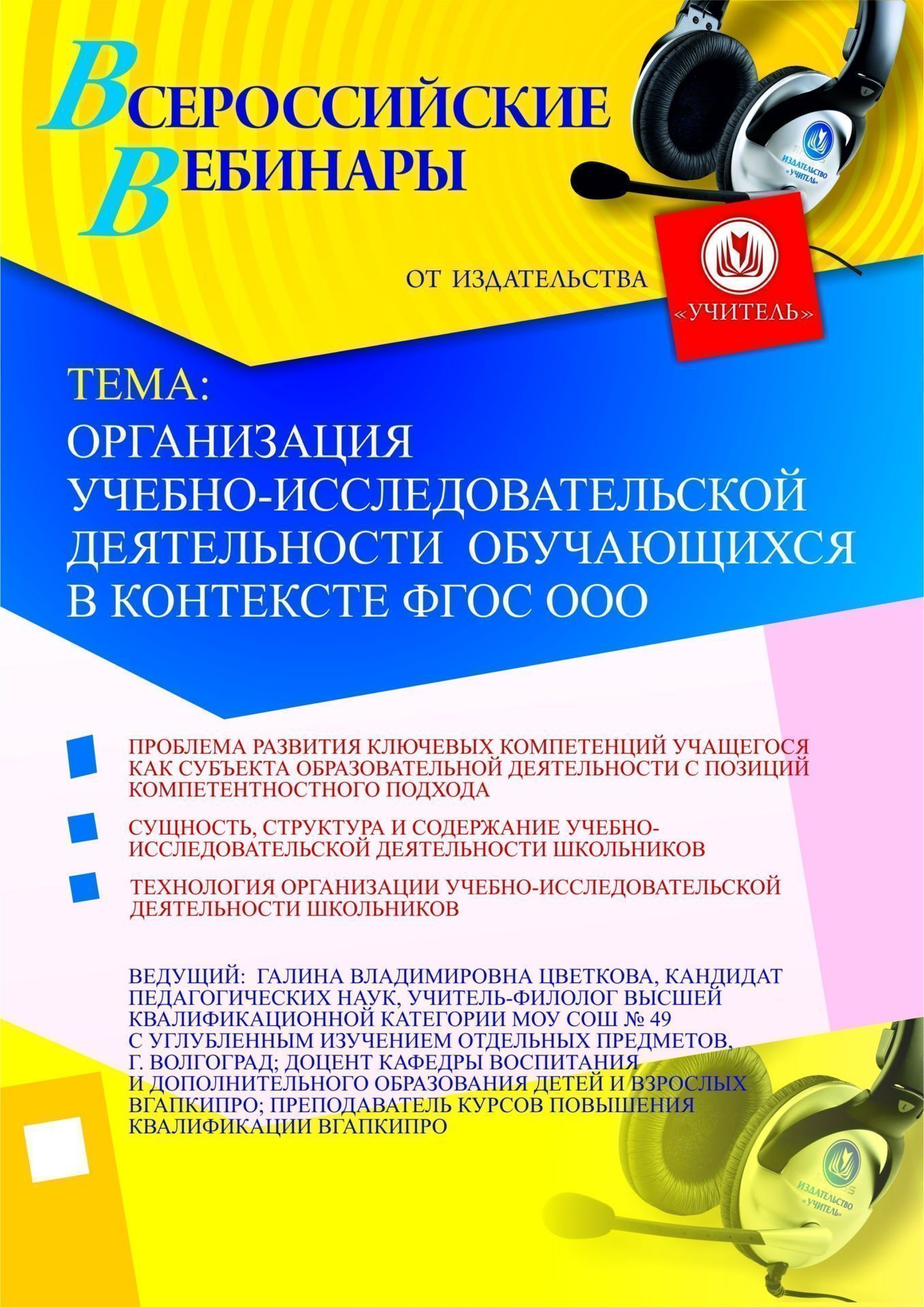 Приглашаем руководителей ОУ, заместителей директора по УВР, НМР, руководителей предметных методических объединений, учителей, педагогов дополнительного образования принять участие в offline-семинаре по теме «Организация учебно-исследовательской деятельности обучающихся в контексте ФГОС ООО».