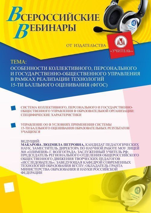 Приглашаем руководителей, учителей, методистов принять участие в offline-вебинаре «Особенности коллективного, персонального и государственно-общественного управления в рамках реализации технологий 15-ти балльного оценивания (ФГОС)».