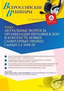 Вебинар Актуальные вопросы организации питания в ДОО в контексте новых санитарных правил СанПиН 2.4 3648-20