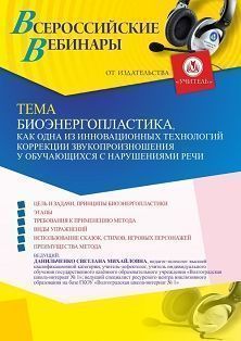 Вебинар Биоэнергопластика как одна из инновационных технологий коррекции звукопроизношения у обучающихся с нарушениями речи