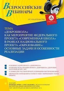 Вебинар "Доброшкола" как мероприятие федерального проекта "Современная школа" в рамках национального проекта "Образование": основные задачи и особенности реализации