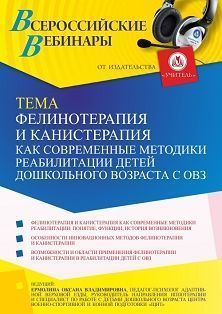 Вебинар Фелинотерапия и канистерапия как современные методики реабилитации детей дошкольного возраста с ОВЗ