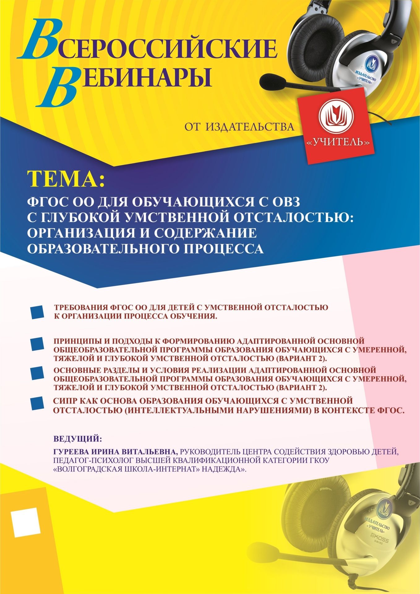 Вебинар "ФГОС ОО для обучающихся с ОВЗ с глубокой умственной отсталостью: организация и содержание образовательного процесса"