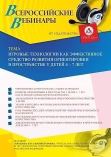 Вебинар Игровые технологии как эффективное средство развития ориентировки в пространстве у детей 4 – 7 лет