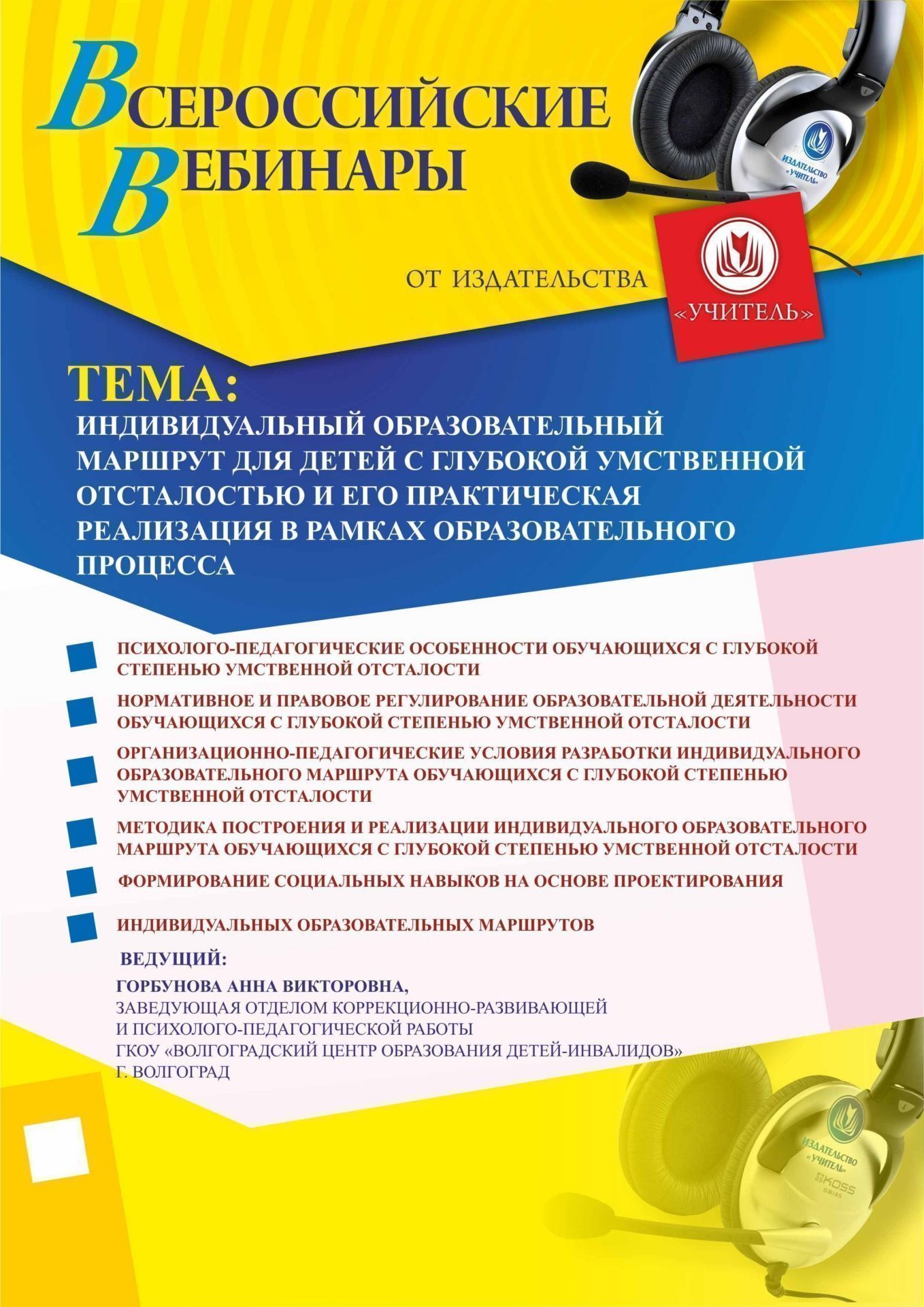 Вебинар "Индивидуальный образовательный маршрут для детей с глубокой умственной отсталостью и его практическая реализация в рамках образовательного процесса"