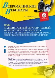 Вебинар Индивидуальный образовательный маршрут учителя-логопеда: технологии, приемы и особенности работы, выбор педагогического инструментария