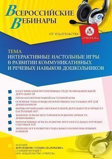 Вебинар Интерактивные настольные игры в развитии коммуникативных и речевых навыков дошкольников